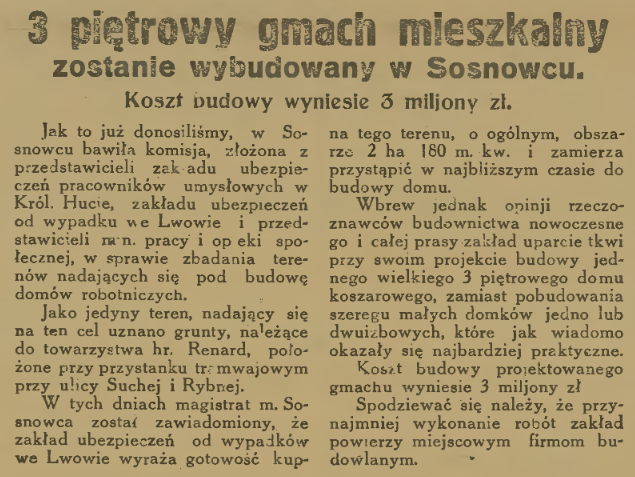 Plan budowy domów robotniczych w Sosnowcu